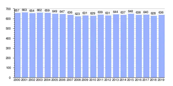 | Gráfica de evolución demográfica de Touro entre 2000 y 2019 |