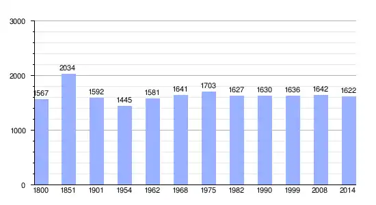 Los datos demográficos contemplados en este gráfico de la comuna de Tourouvre[4] se han cogido de 1800 a 1999 de la página francesa EHESS/Cassini, y los demás datos de la página del INSEE.[5]