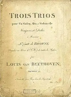- ↑ a b «Three Trios for violin, viola and violoncello (G, D major, C minor) op. 9». www.beethoven.de. Consultado el 20 de mayo de 2023.