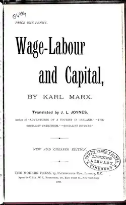 - ↑ Marx, Karl (1885). Wage-Labour and Capital. London: The Modern Press.