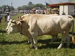 Los bueyes en el trabajo son mayoritariamente en parejas, los animales están unidos por un equipo para permitirle avanzar en la misma fila y, por tanto, de manera sincrónica. Hay varias maneras de aprovechar el ganado. Se dice que el sistema más antiguo es el yugo de cuernos, o simplemente yugo, cuyo uso se remonta al antiguo Egipto y que consta en una barra de madera que se coloca entre los cuernos de dos bóvidos. El otro sistema que lo sustituyó es el yugo de la cruz que se adapta al cuello de los animales.[4]