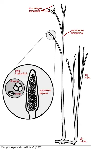- ↑ a b Kenrick, P y PR Crane. 1997a. The origin and early diversification of land plants: A cladistic study. Smithsonian Institution Press, Washington, DC.