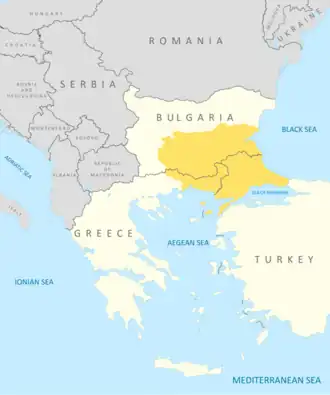 Provincias de Burgas, Sliven, Yambol, Stara Zagora, Haskovo, Plovdiv, Kardzhali, Pazardzhik y Smolyan (BUL) Macedonia Oriental y Tracia (GRE) Edirne, Kırklareli, Tekirdağ, y zonas europeas de las provincias de Estambul y Çanakkale (TUR) | |