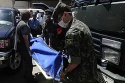 El Centro Deportivo Municipal se utilizó inicialmente para que las familias realizaran el reconocimiento de los cuerpos, porque la morgue de la ciudad sólo tenía capacidad para diez cuerpos.[31][32]