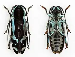 - ↑ a b c d e f «Tragocephala caerulescens». Instituto de Investigación para el Desarrollo - Base de données Titan sur les Cerambycidés ou Longicornes (en francés). Consultado el 13 de junio de 2022.
