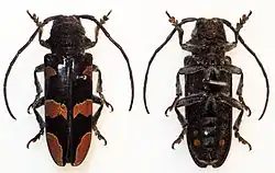 - ↑ a b c d e «Tragocephala morio». Instituto de Investigación para el Desarrollo - Base de données Titan sur les Cerambycidés ou Longicornes (en francés). Consultado el 13 de junio de 2022.