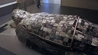 En 1973, un traje funerario de jade perteneciente al príncipe Huai de la dinastía Han Occidental fue descubierto en Dingxian, Hebei. Consta de 1.203 piezas de jade y 2,580 gramos de hilo de oro.[2][3]