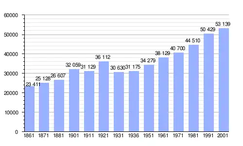 | Gráfica de evolución demográfica de Trani entre 1861 y 2001 |