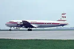- El 20 de enero de 1968, el tren delantero de un Douglas DC-7B de Transair Sweden (SE-ERC) colapsó durante el aterrizaje en el Aeropuerto de Múnich-Riem. La aeronave, alquilada a Türk Hava Yollari (THY, hoy Turkish Airlines), se salió de la pista. Los 38 ocupantes (6 tripulantes y 32 pasajeros) resultaron ilesos. El avión sufrió daños irreparables.[24]