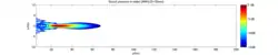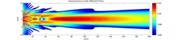 El patrón de haz de un transductor puede determinarse por el área y la forma del transductor activo, la longitud de onda de los ultrasonidos y la velocidad del sonido del medio de propagación. Los diagramas muestran los campos sonoros de un transductor ultrasónico no enfocado y de un enfoque en el agua, claramente a diferentes niveles de energía.