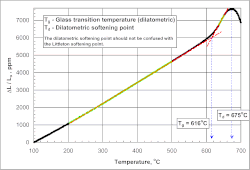 Otra definición más de Tg usa la torsión en la dilatometría (expansión térmica). Aquí, las tasas de calentamiento de 3–5 K/min (5.4–9.0 °F/min) son comunes. A continuación se resumen los valores de Tg característicos de ciertas clases de materiales.