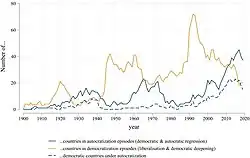 Una transición democrática describe una fase en el sistema político de un país, en el que se cambia de un régimen autoritario a uno democrático.[1][2][3] El proceso se conoce como democratización, por los cambios políticos que se mueven en una dirección democrática.[4]