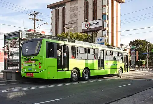 ![]() Autobús biarticulado del sistema de Transmetro de la Ciudad de Guatemala. | ||