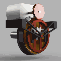 El movimiento vertical de la rueda motriz da como resultado que los segmentos del engranaje se muevan debido al mecanismo interno, de forma que la rueda motriz puede moverse en una dirección horizontal o vertical con respecto a la rueda del engranaje, mientras continúa recibiendo el impulso de la rueda dentada.[1]
