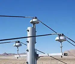 Al estar estas formadas por estructuras hechas de perfiles de acero, como medio de sustentación del conductor se emplean aisladores de disco o aisladores poliméricos y herrajes para soportarlos.