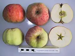 - ↑ Hampson, Cheryl R.; Kemp, Henk (2003). Apples. Botany, Production and Uses, ed. Characteristics of Important Commercial Apple Cultivars. CABI Publishing. pp. 62. ISBN 0-85199-592-6.