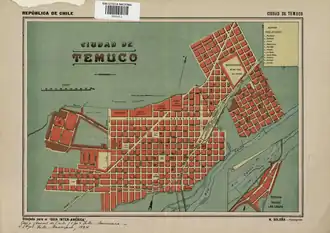 - ↑ E. Castaings (1919). «Plano de la ciudad de Temuco y sus poblaciones [material cartográfico]». Biblioteca Nacional Digital. Consultado el 5 de junio de 2020.