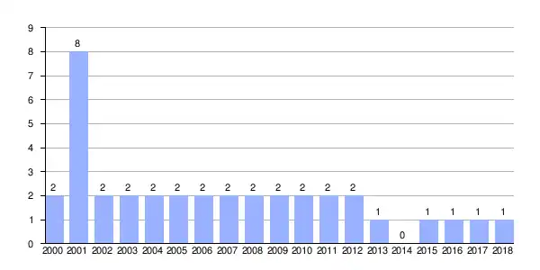 | Gráfica de evolución demográfica de Trapa entre 2000 y 2018 |