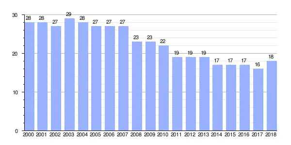 | Gráfica de evolución demográfica de Trasbar entre 2000 y 2018 |