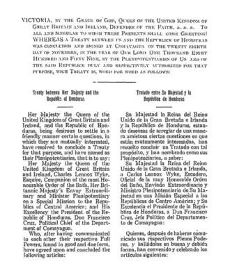 | Tratado entre Su Majestad y la República de Honduras, relativo a las Islas de la Bahía y a los Indios Mosquitos, y a los derechos y reclamaciones de los súbditos británicos. | ||