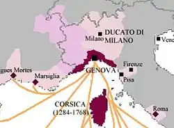 Córcega había sido gobernada por Génova desde 1284. En el siglo XVIII, los corsos comenzaron a buscar su independencia. Un aventurero alemán, Theodore von Neuhof, se convirtió brevemente en rey de Córcega en 1736, apoyado por la República Holandesa y Gran Bretaña, que ya poseía Menorca y Gibraltar en el Mar Mediterráneo. En 1755 se fundó una República de Córcega de pleno derecho bajo Pasquale Paoli, y en 1764 Génova pidió a Francia que enviara tropas a la isla.[1]