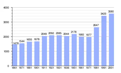 | Gráfica de evolución demográfica de Travacò Siccomario entre 1861 y 2001 |