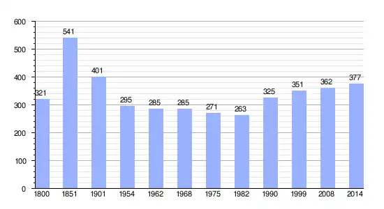 Los datos demográficos contemplados en este gráfico de la comuna de Trenal[4] se han cogido de 1800 a 1999 de la página francesa EHESS/Cassini, y los demás datos de la página del INSEE.[5]