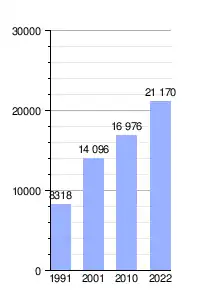 En el censo de 2022 se contabilizaron 21 170 habitantes en la zona urbana, y 26 416 en todo el municipio. En 2010 la población era de 16 976 en la zona urbana, por lo que hubo un incremento del 24%.
