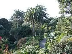 Entre sus plantas destacan, Proteacea, Acacia, Metrosideros, Eucalyptus, Mesembryanthemum, cactus y suculentas del Sur de África, Puya de Suramérica, árboles y arbustos de Nueva Zelanda, Aeonium, Aloe.