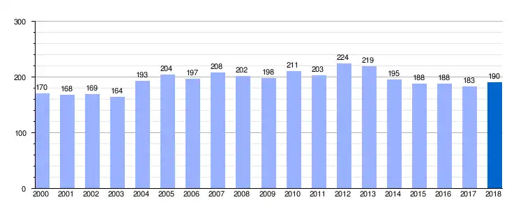 | Gráfica de evolución demográfica de Treviño entre 2000 y 2018 |