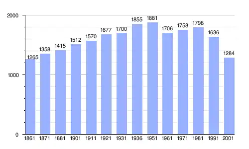 | Gráfica de evolución demográfica de Trevico entre 1861 y 2001 |