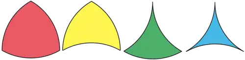 Otros triángulos circulares pueden tener una mezcla de bordes de arco circular cóncavos y convexos.