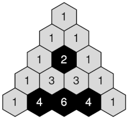 Existe una propiedad sobre el triángulo de Pascal que indica que si el primer elemento de una fila (sin contar los «1») es un número primo, entonces todos los demás elementos de la fila serán divisibles por él.