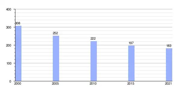 | Gráfica de evolución demográfica de Triacastela (parroquia) entre 2000 y 2021 |