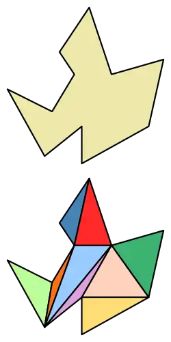 En geometría, la triangulación de un polígono o área poligonal es una partición de dicha área en un conjunto de triángulos por un conjunto máximal de diagonales que no se cruzan.[1]