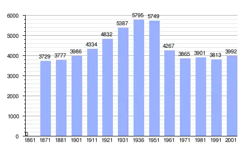 | Gráfica de evolución demográfica de Tribano entre 1861 y 2001 |
