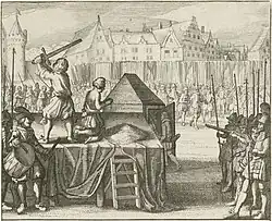 - ↑ Las ejecuciones fueron una práctica común de la justicia real. Tal el caso de la Rebelión del Norte de 1569-1570 contra la reina Isabel I de Inglaterra en donde la cifra de ejecutados por complicidad fue superior a la de 600 personas. Maltby, William S. El Gran Duque de Alba. Atalanta. Barcelona. 2007. P. 257 y nota 92 de P. 263.