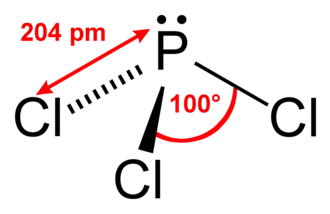 El tricloruro de fósforo es un compuesto químico de fósforo y cloro, con la fórmula química PCl3. Su geometría molecular es trigonal piramidal. Es el más importante de los cloruros de fósforo. Es un compuesto químico industrial importante, que se usa en la manufactura de compuestos organofosforados para una amplia variedad de aplicaciones. Tiene una señal 31P NMR aproximadamente a +220 ppm.