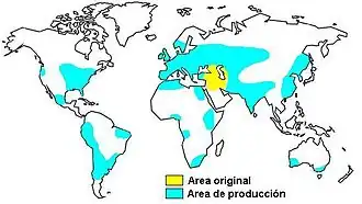 - ↑ «Wheat production in 2019 from pick lists: Crops/World regions/Production quantity». UN Food and Agriculture Organization, Statistics Division, FAOSTAT. 2021. Consultado el 18 de abril de 2021.