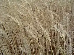 El término trigo (Triticum spp.)[2] designa al conjunto de cereales, tanto cultivados como silvestres, que pertenecen al género Triticum; se trata de plantas anuales de la familia de las gramíneas,[3] ampliamente cultivadas en todo el mundo.[4] La palabra designa tanto a la planta como a sus semillas comestibles, tal como ocurre con los nombres de otros cereales.[5]