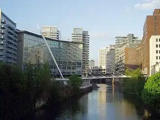 El Trinity Bridge es un puente peatonal que cruza el río Irwell y une las dos ciudades de Mánchester y Salford en el Gran Mánchester, Reino Unido. Fue diseñado por el renombrado arquitecto español Santiago Calatrava y se completó en 1995. Fue uno de los primeros puentes diseñados por Calatrava y sigue siendo el único proyecto que ha completado en el Reino Unido.