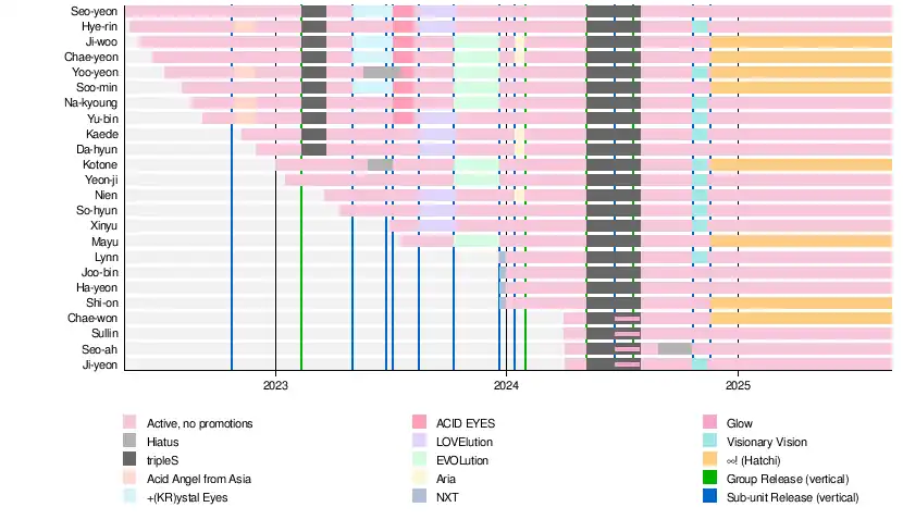 - EVOLution - Jiwoo, Chaeyeon, Yooyeon (líder de la subunidad), Soomin, Nakyoung, Kotone, Yeonji y Mayu.