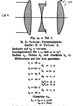 - ↑ Sharma, K. D. (1 de diciembre de 1979). «Design of a new five-element Cooke triplet derivative». Applied Optics 18 (23): 3933-3937. ISSN 1559-128X. PMID 20216728. doi:10.1364/AO.18.003933.