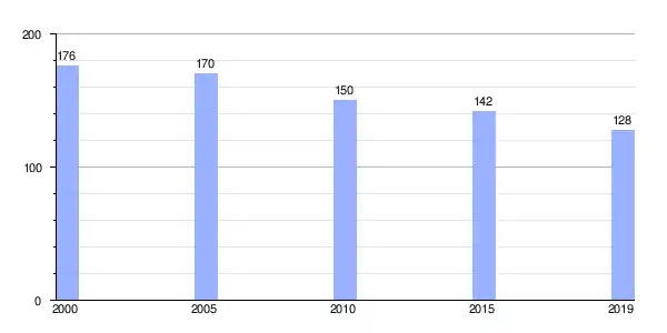 | Gráfica de evolución demográfica de Trobo entre 2000 y 2019 |