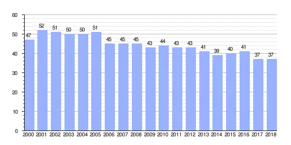 | Gráfica de evolución demográfica de Troitosende (aldea) entre 2000 y 2018 |