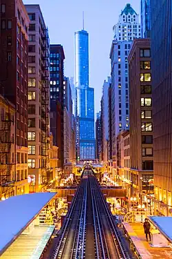 El Trump International Hotel and Tower, también conocido como Trump Tower Chicago, Trump Tower y, en español, Torre Trump, es un rascacielos de uso residencial y hotelero situado en el centro de Chicago (Illinois, Estados Unidos). El edificio, que recibe el nombre del promotor inmobiliario Donald Trump, fue diseñado por el arquitecto Adrian Smith de Skidmore, Owings and Merrill. La empresa Bovis Lend Lease fue la constructora de este rascacielos de 98 plantas, que alcanza una altura de 423 m incluyendo la antena, y una altura de azotea de 357 m.[5] Ubicado al lado del curso principal del río Chicago, ofrece vistas de su desembocadura en el lago Míchigan tras los numerosos puentes que cruzan el río. El edificio recibió publicidad cuando el ganador del show televisivo The Apprentice, Bill Rancic, eligió dirigir la construcción de esta torre.[6]