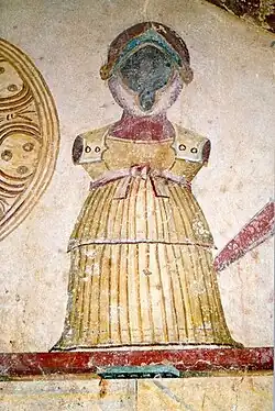 - ↑ Palagia, Olga (2016). «Commemorating the Dead: Grave Markers, Tombs and Tomb Paintings 400–30 BCE». A Companion to Greek Architecture (en inglés). Margaret Miles (dir.). Hoboken: John Wiley & Sons. pp. 374-390, 384. ISBN 978-1-118-32761-6. Consultado el 3 de septiembre de 2022.
