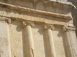 La base de la estructura consta de un crepidoma de tres niveles rematado por un estilóbato, patrón común de la arquitectura griega clásica.[9] Encima se erigen dos columnas jónicas, con sus capiteles decorados con ovas y dardos, entre dos medias columnas (del mismo orden) adyacentes a pilastras en ambos extremos.[2] Las columnas —labradas a partir de la roca, de la que sobresalen solo en poco más de la mitad de su circunferencia— «sostienen» una cornisa de estilo egipcio antiguo, y por encima yace una cubierta piramidal de una altura idéntica a la de las columnas y la cornisa juntas. Al igual que las otras tumbas del complejo, este estilo arquitectónico está claramente influenciado por la arquitectura helenística (prueba de un proceso de helenización artística de la comunidad judía de la época)[10] y su aplicación en las construcciones rupestres.[11] Si bien, a diferencia de la tumba de Benei Hezir, en esta estructura se han empleado elementos jónicos (en una variación típica de Jerusalén) y no dóricos.[10] También la influencia de la arquitectura egipcia era práctica común de la época, con algunas excepciones, como en el caso de la tumba de Benei Hezir.