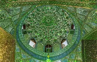 El santuario actual se construyó en el siglo XIX después de los daños sufridos por los terremotos durante los siglos. La particularidad de este lugar es su cúpula con forma cebolla, típica del estilo arquitectónico de Shiraz y las decoraciones de los interiores a base de fragmentos de espejos venecianos, lo que dota al interior de una atmósfera distinta.