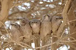 - ↑ Ostreiher, R. (1997). «Food division in the Arabian babbler nest: adult choice or nestling competition?». Behavioral Ecology 8 (2): 233. doi:10.1093/beheco/8.2.233.